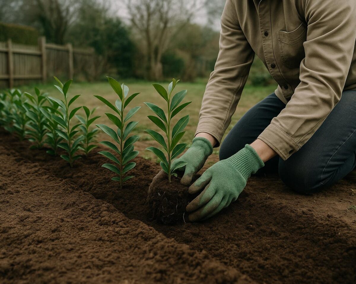 När marken är förberedd är det dags att få dina lagerhäggsplantor på plats. Följ dessa steg för att ge din häck en stark och hälsosam start.