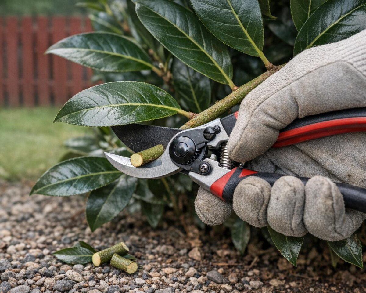 Att använda rätt verktyg gör beskärningen både enklare och skonsammare för lagerhäggens hälsa. Det viktigaste redskapet är en bypass-sekatör. Till skillnad från en häcksax klipper den gröna grenar rent utan att skada de stora bladen, vilket minskar risken för bruna bladkanter. Sekatören är idealisk för grenar upp till cirka 2 cm i diameter och ger exakta snitt som läker snabbt.